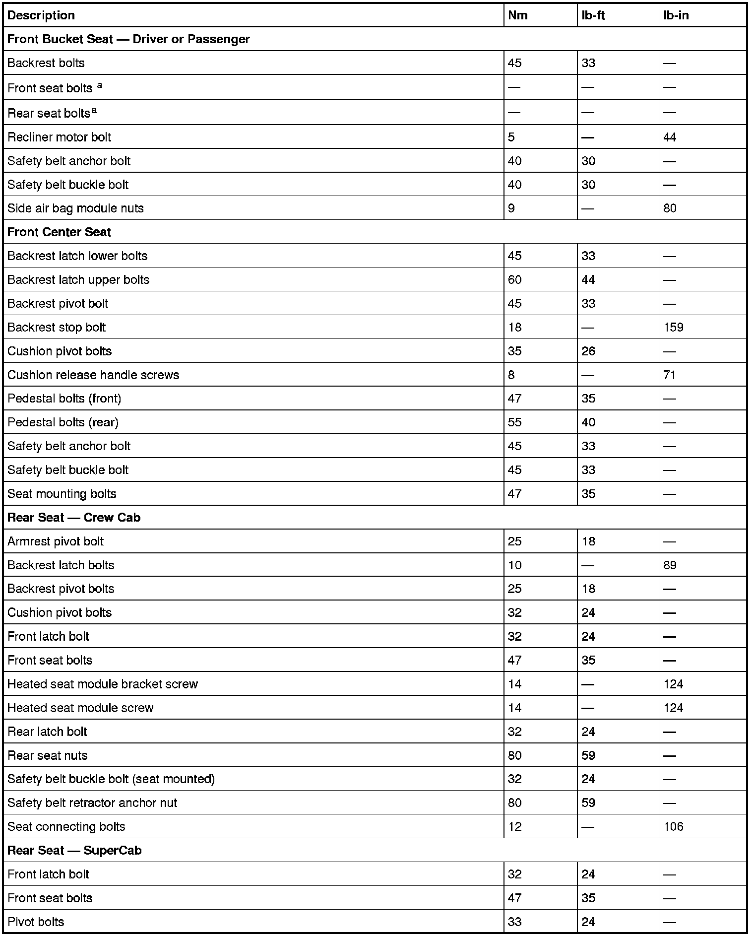 Torque Specifications