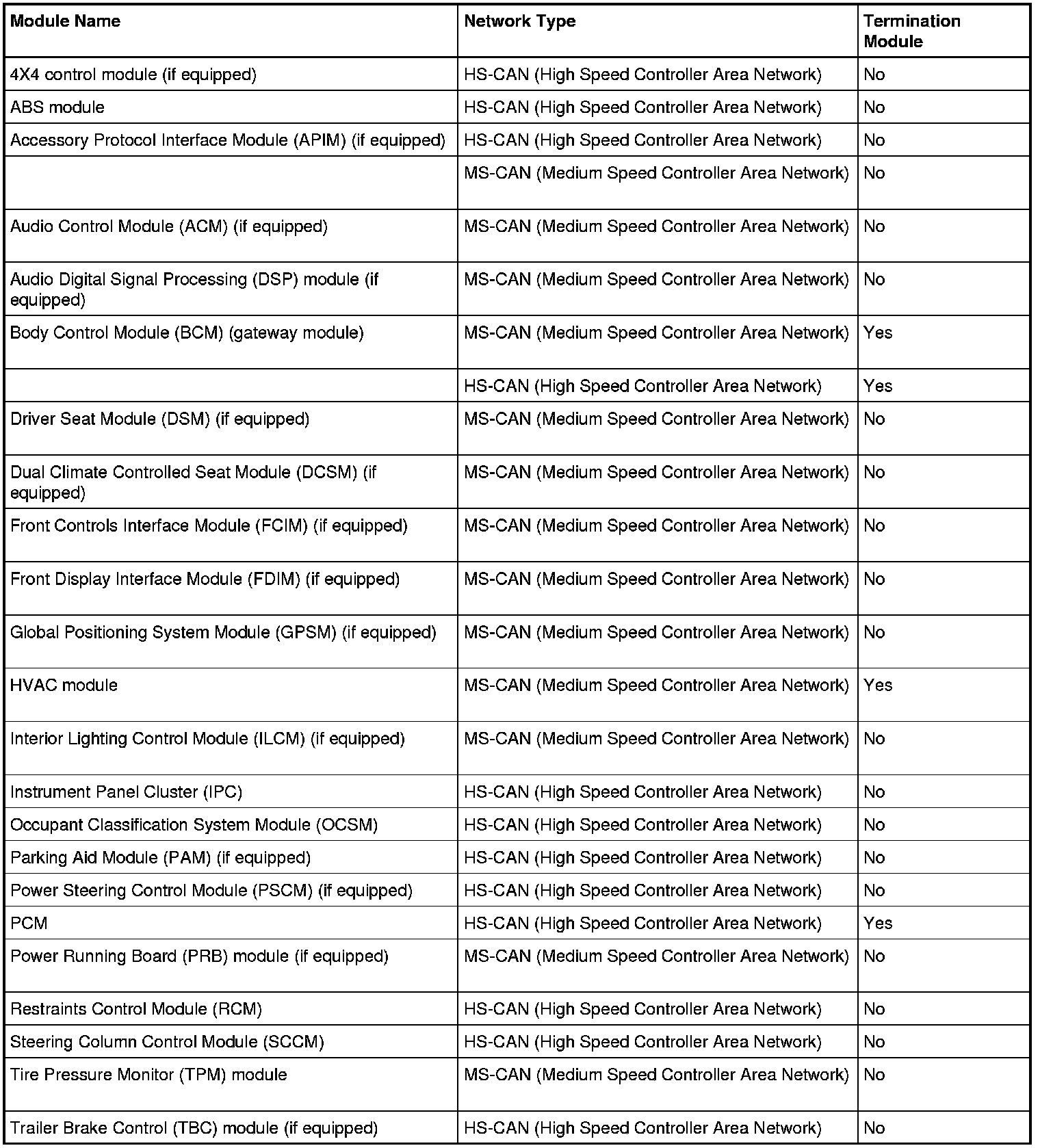 The BCM (Body Control Module) is the gateway module, translating messages on the HS-CAN (High Speed Controller Area Network) to the MS-CAN (Medium Speed Controller Area Network) and vice versa, allowing a message to be distributed throughout both networks.