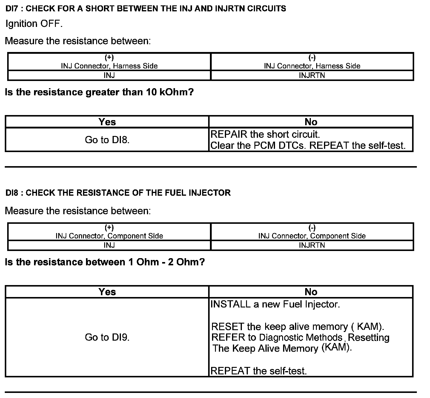 Test DI: Direct Fuel Injection Fuel Injector