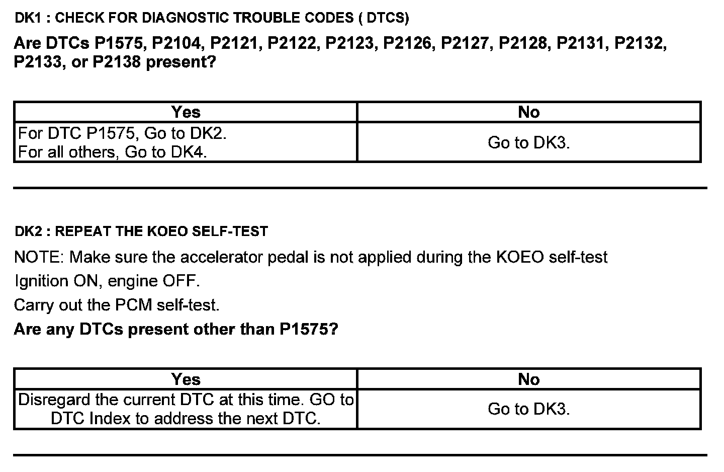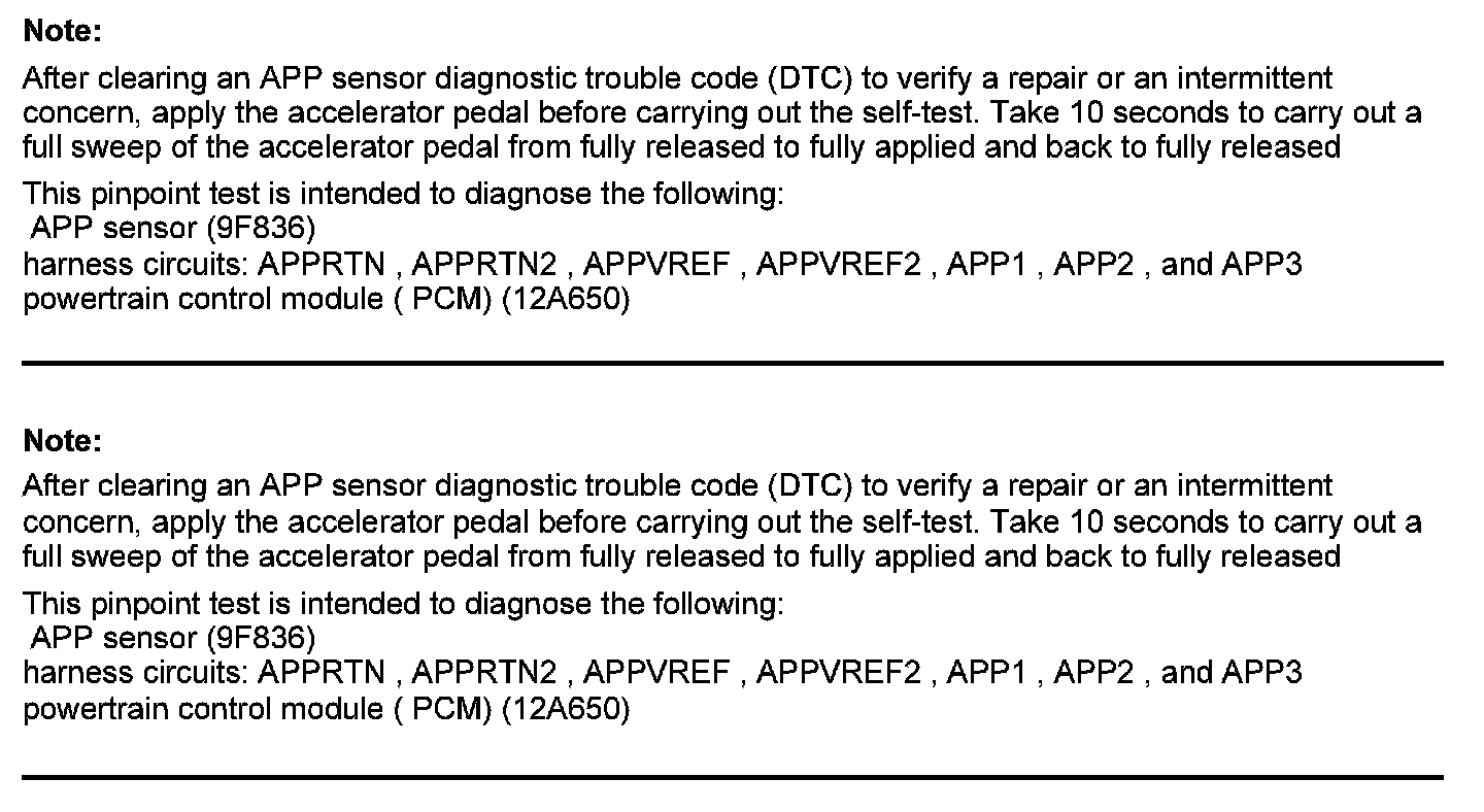 Home >> Ford >> 2012 >> F 150 2WD V8-6.2L >> Repair and Diagnosis >> Powertrain Management >> Computers and Control Systems >> Testing and Inspection >> Pinpoint Tests >> Test DK: Accelerator Pedal Position (APP) Sensor