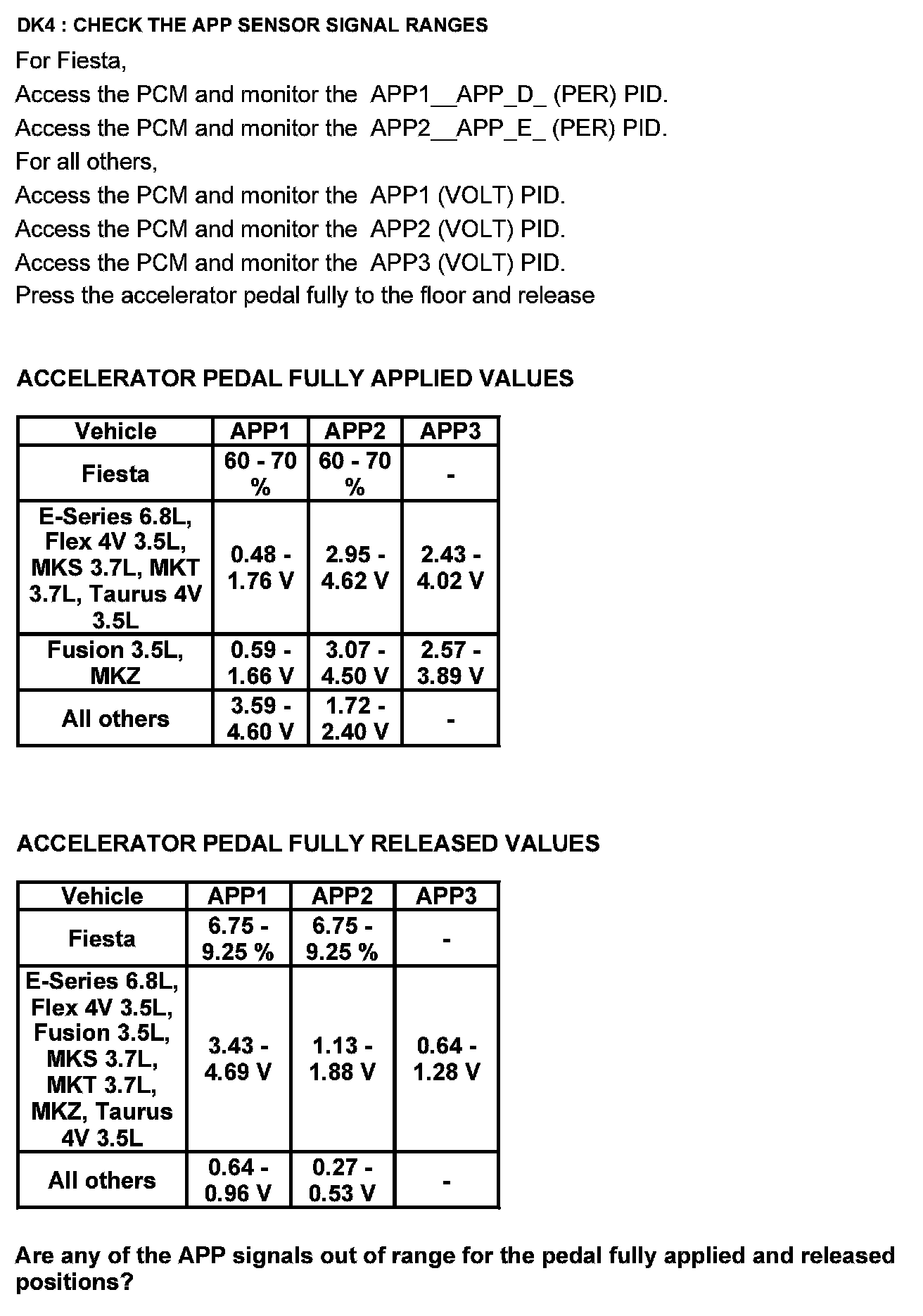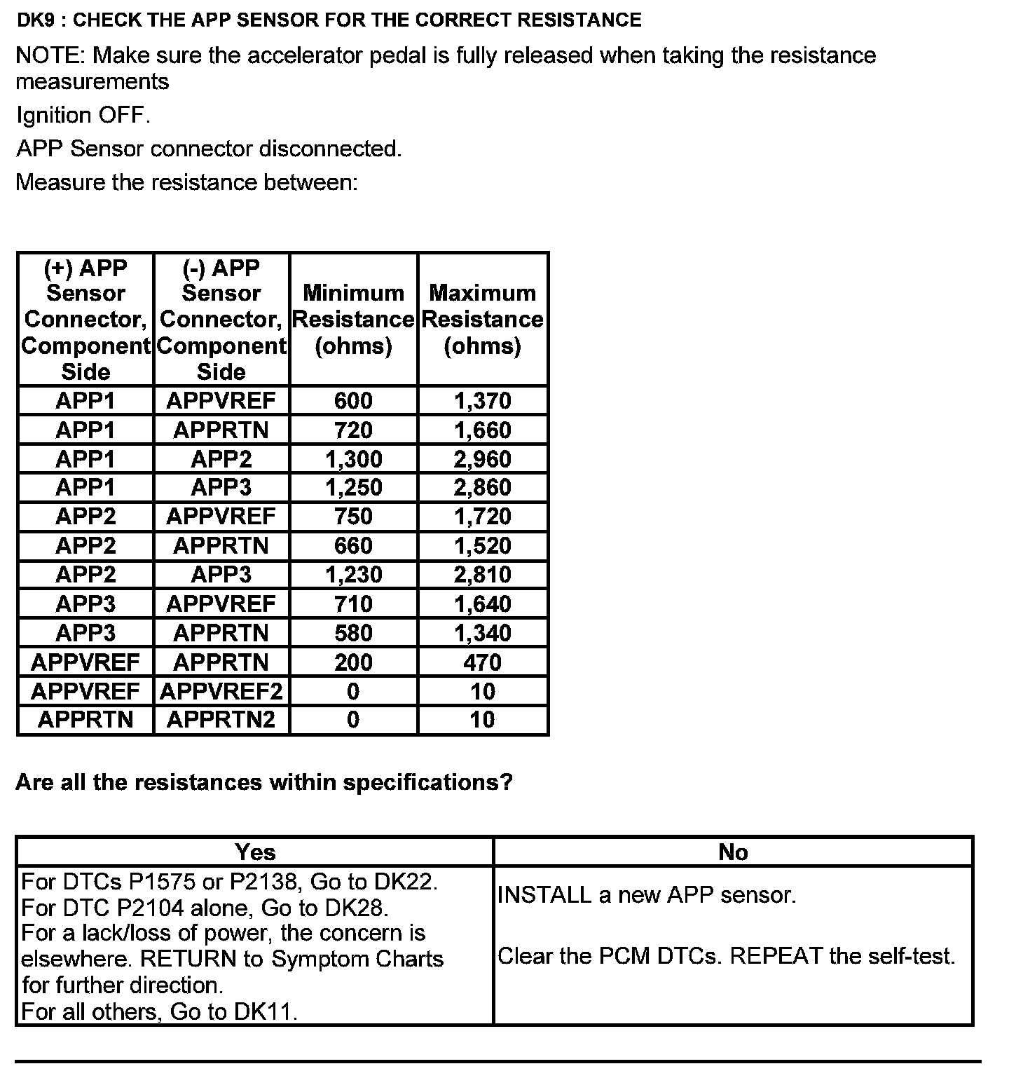 Test DK: Accelerator Pedal Position (APP) Sensor