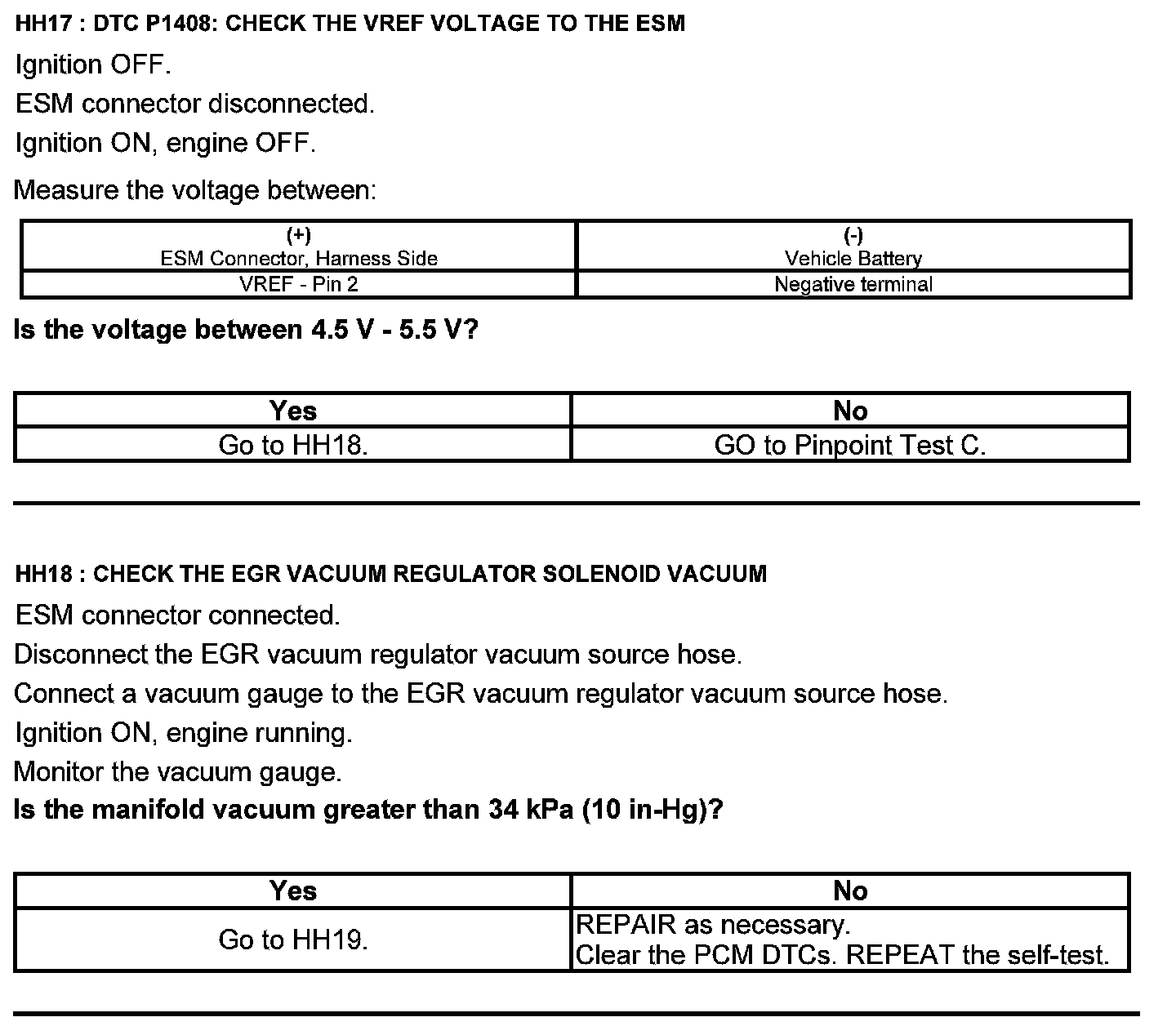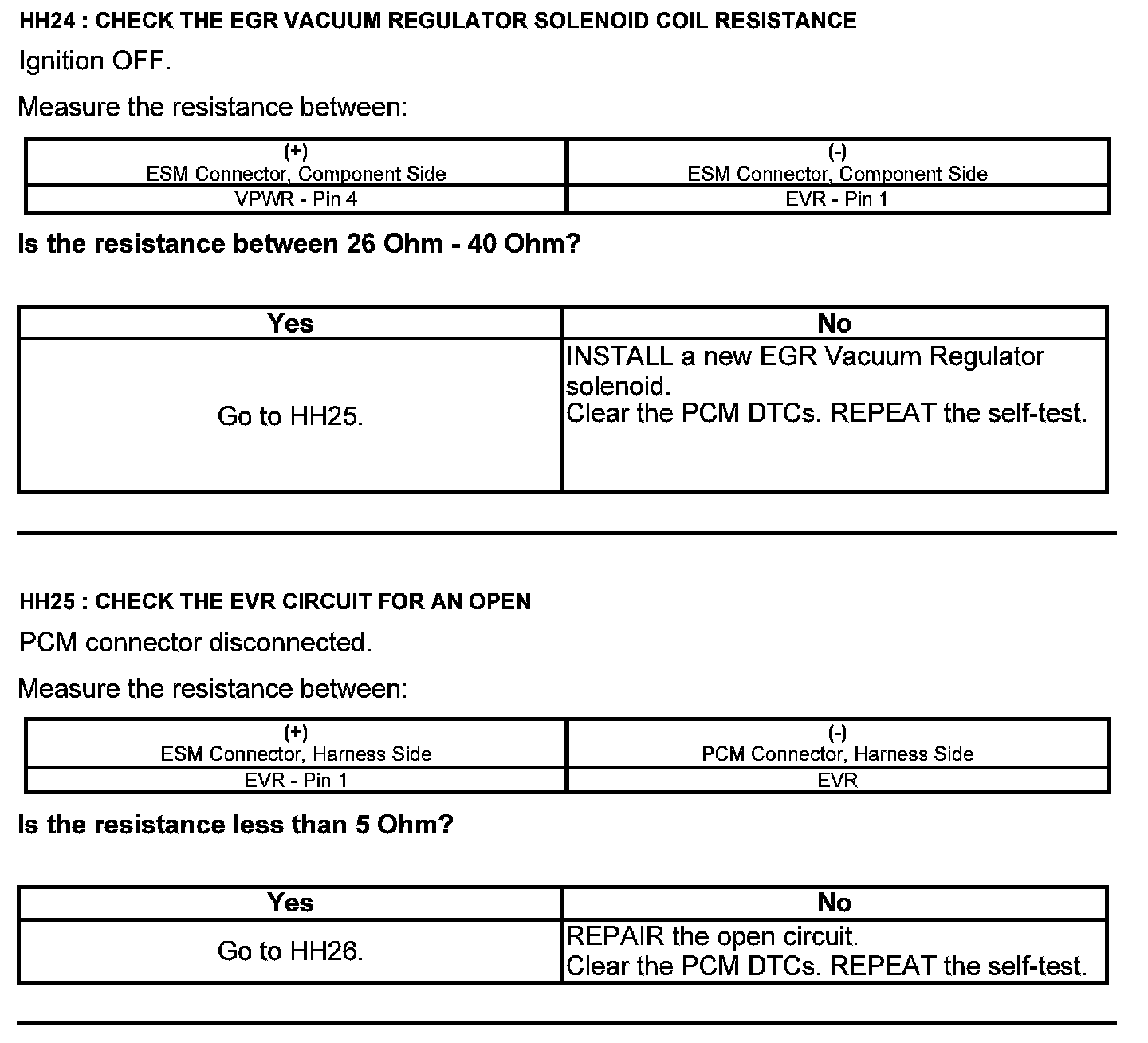 Home >> Ford >> 2012 >> F 150 2WD V8-6.2L >> Repair and Diagnosis >> Powertrain Management >> Computers and Control Systems >> Testing and Inspection >> Pinpoint Tests >> Test HH: Exhaust Gas Recirculation System Module (ESM)