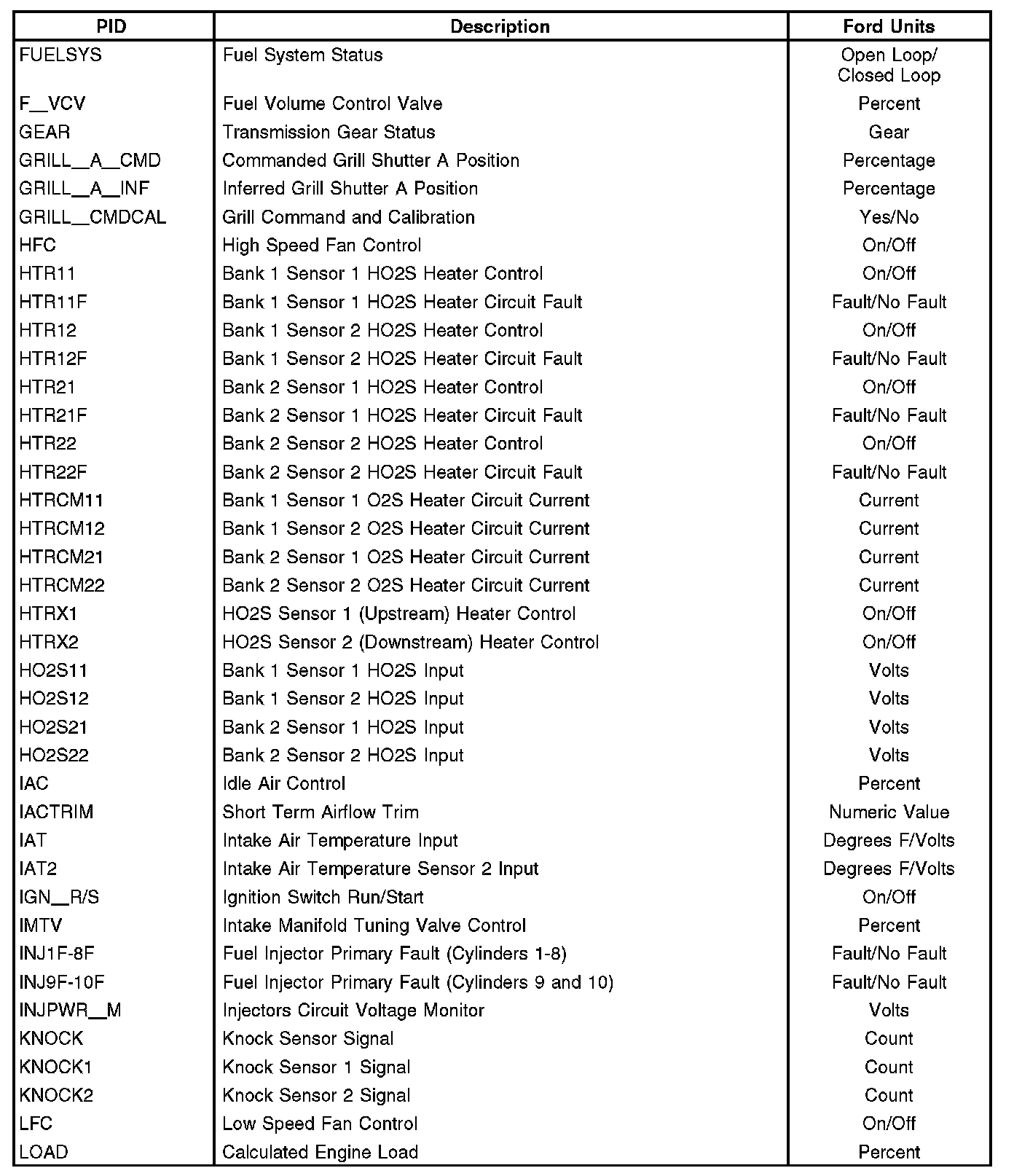 Home >> Ford >> 2012 >> F 150 2WD V8-6.2L >> Repair and Diagnosis >> Powertrain Management >> Computers and Control Systems >> Testing and Inspection >> Scan Tool Testing and Procedures >> Parameter Identification (PID)