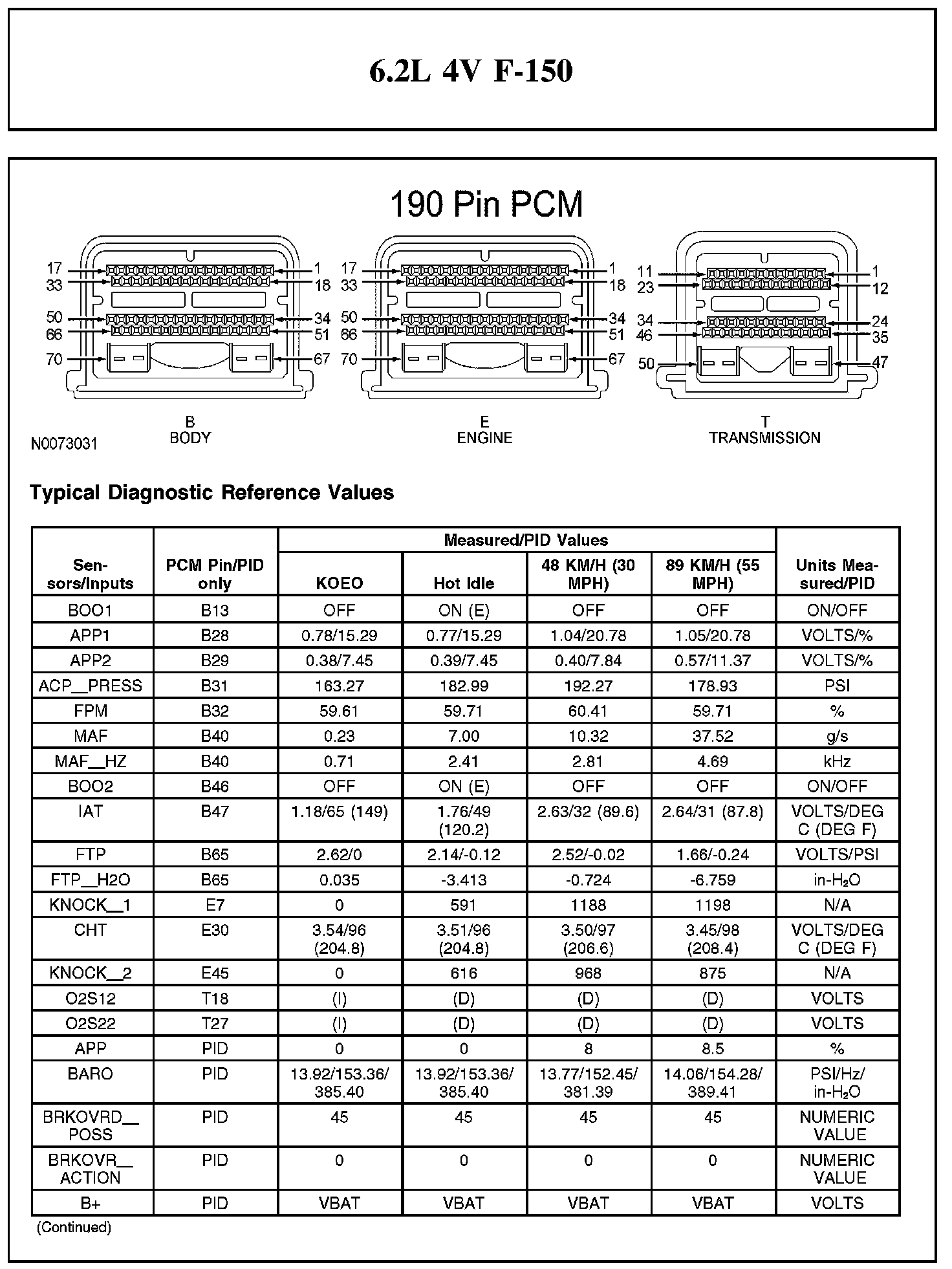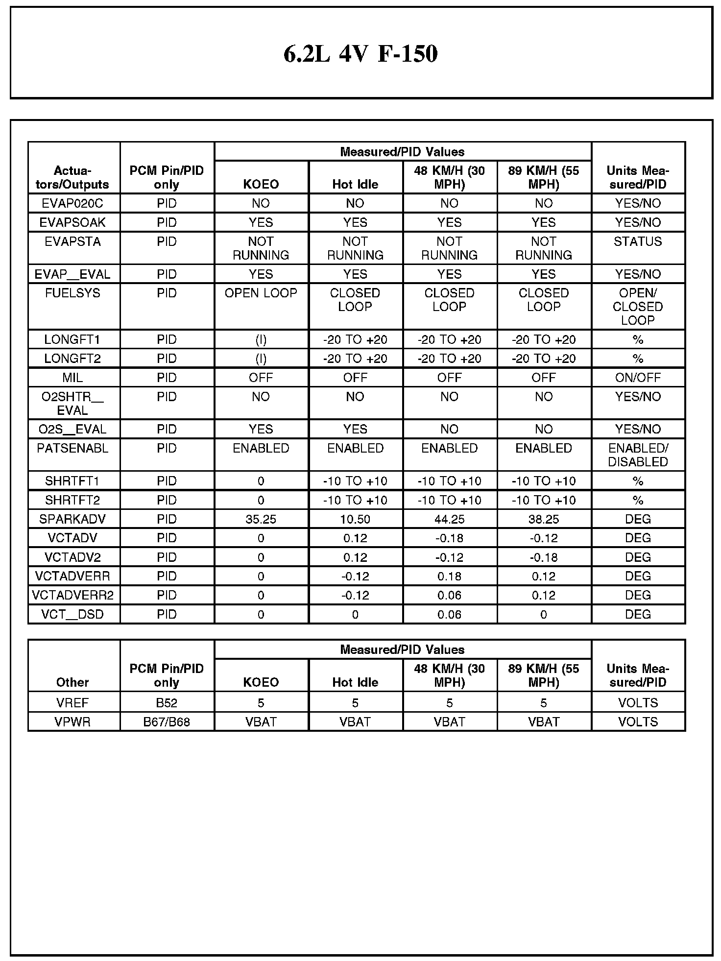 Home >> Ford >> 2012 >> F 150 2WD V8-6.2L >> Repair and Diagnosis >> Powertrain Management >> Computers and Control Systems >> Testing and Inspection >> Scan Tool Testing and Procedures >> Typical Diagnostic Reference Values