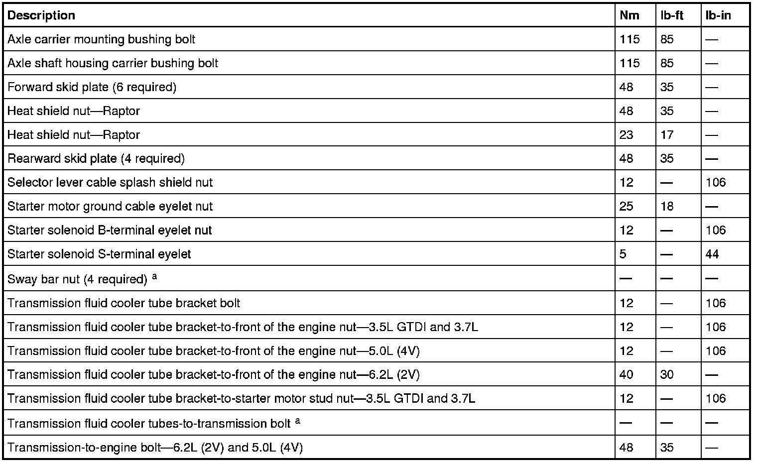 Torque Specifications