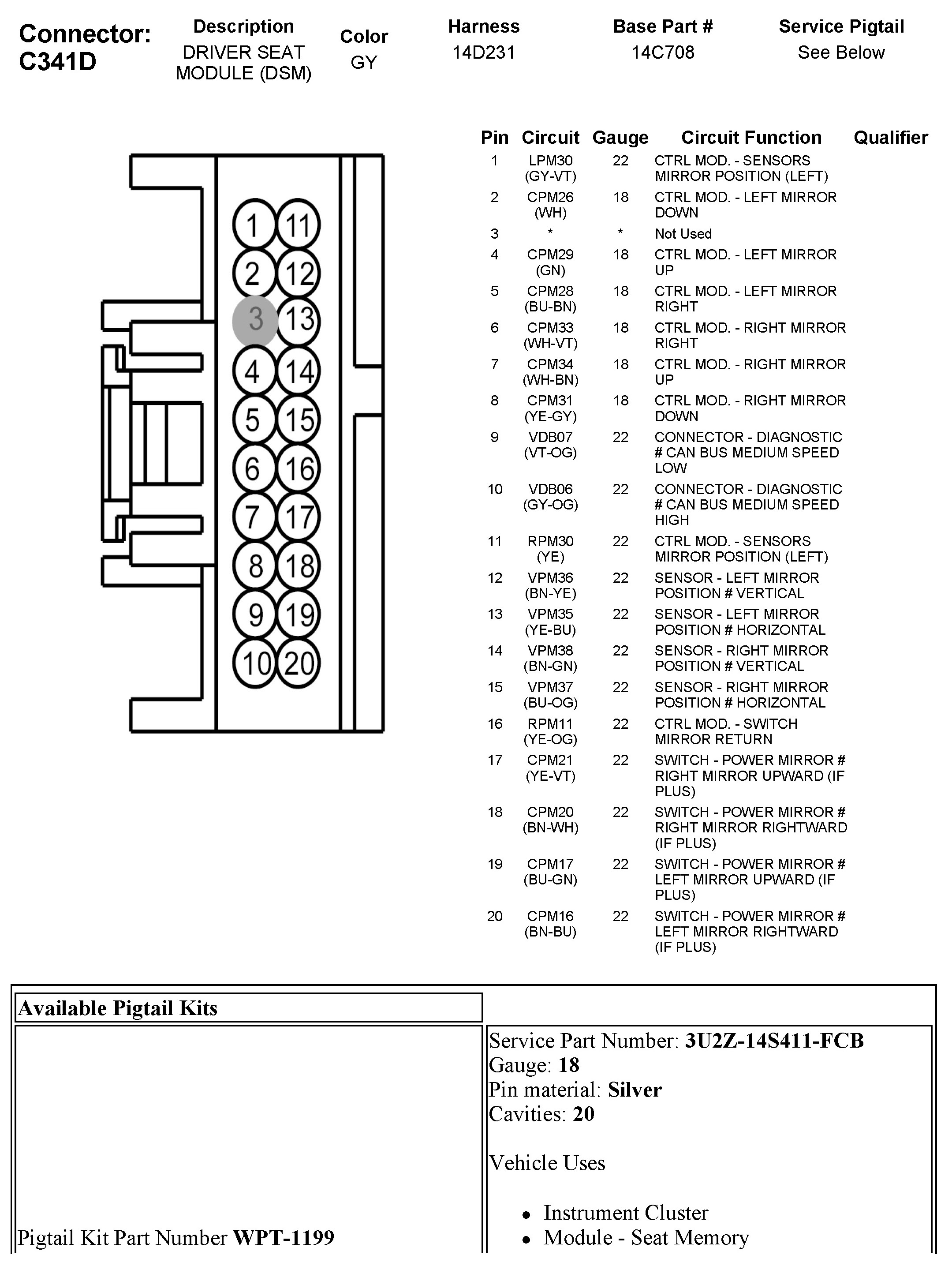 C341D Driver Seat Module (DSM)