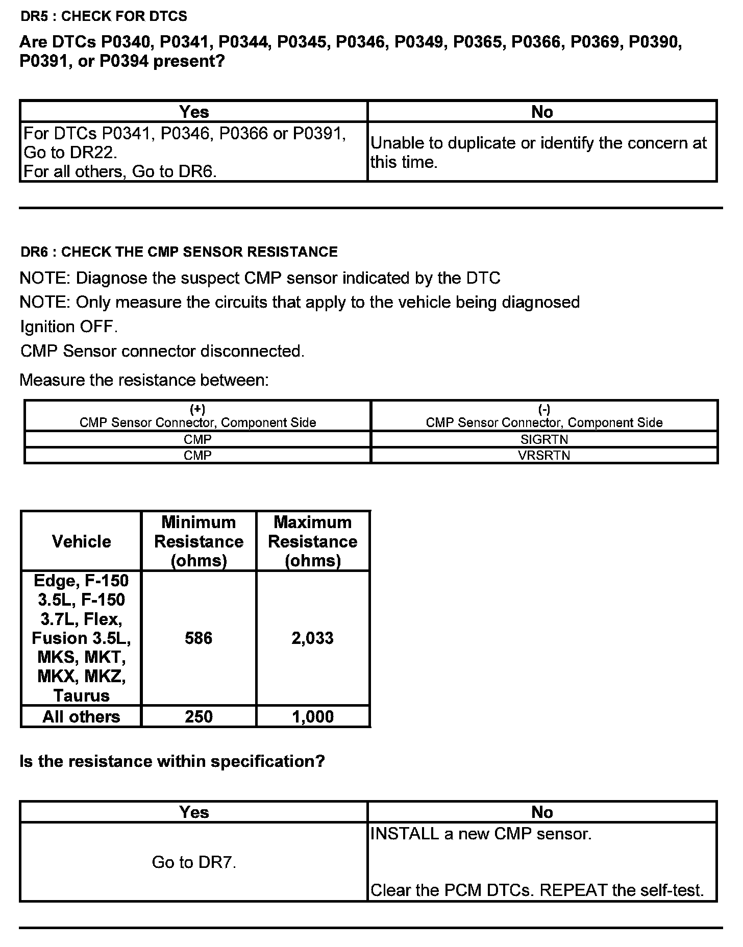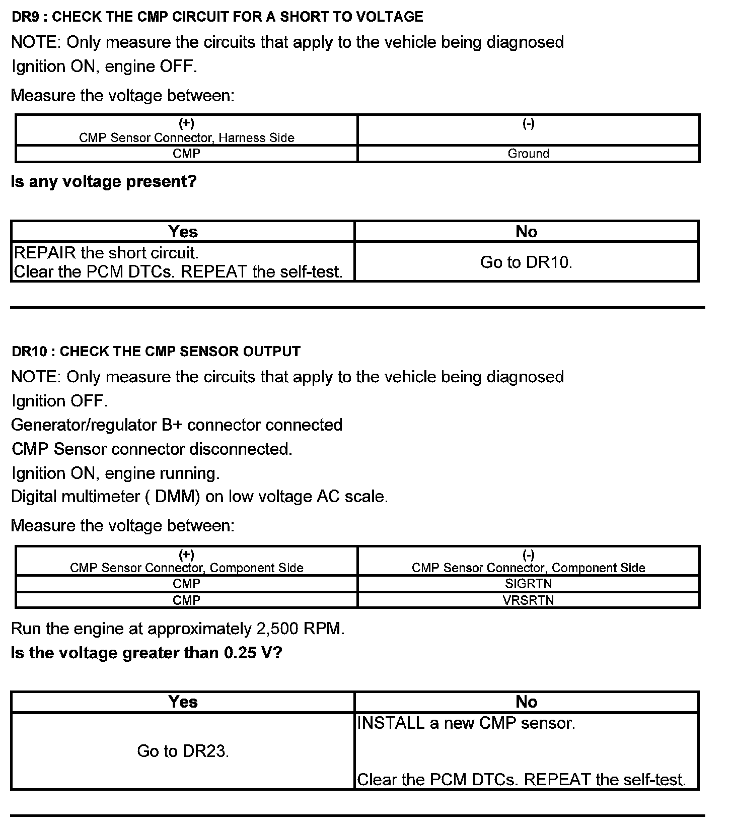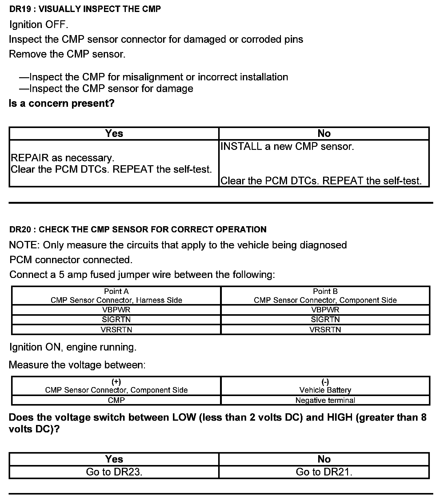 Test DR: Camshaft Position (CMP) Sensor