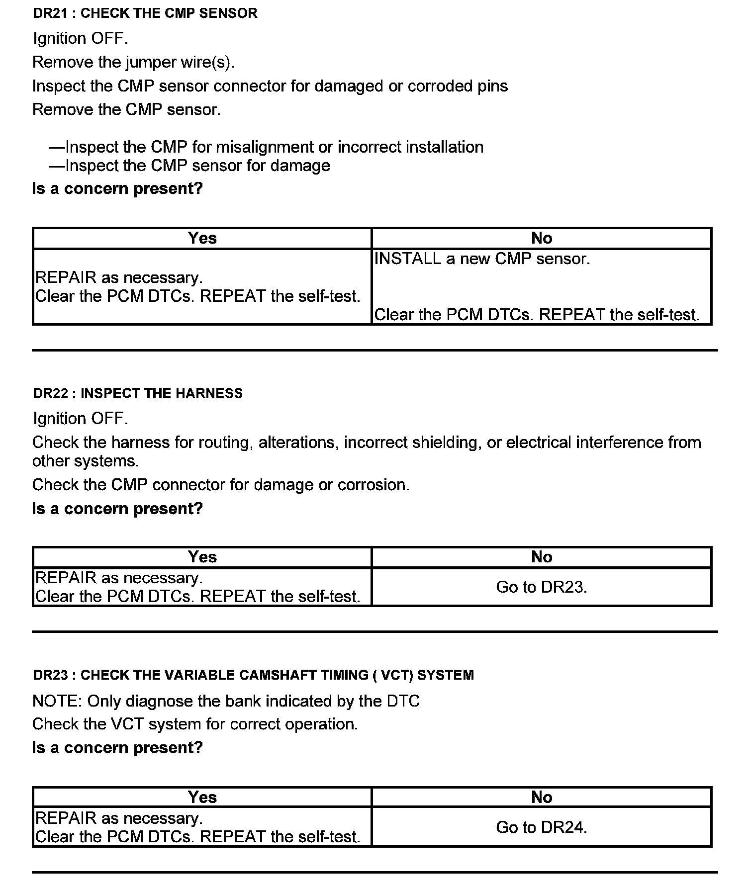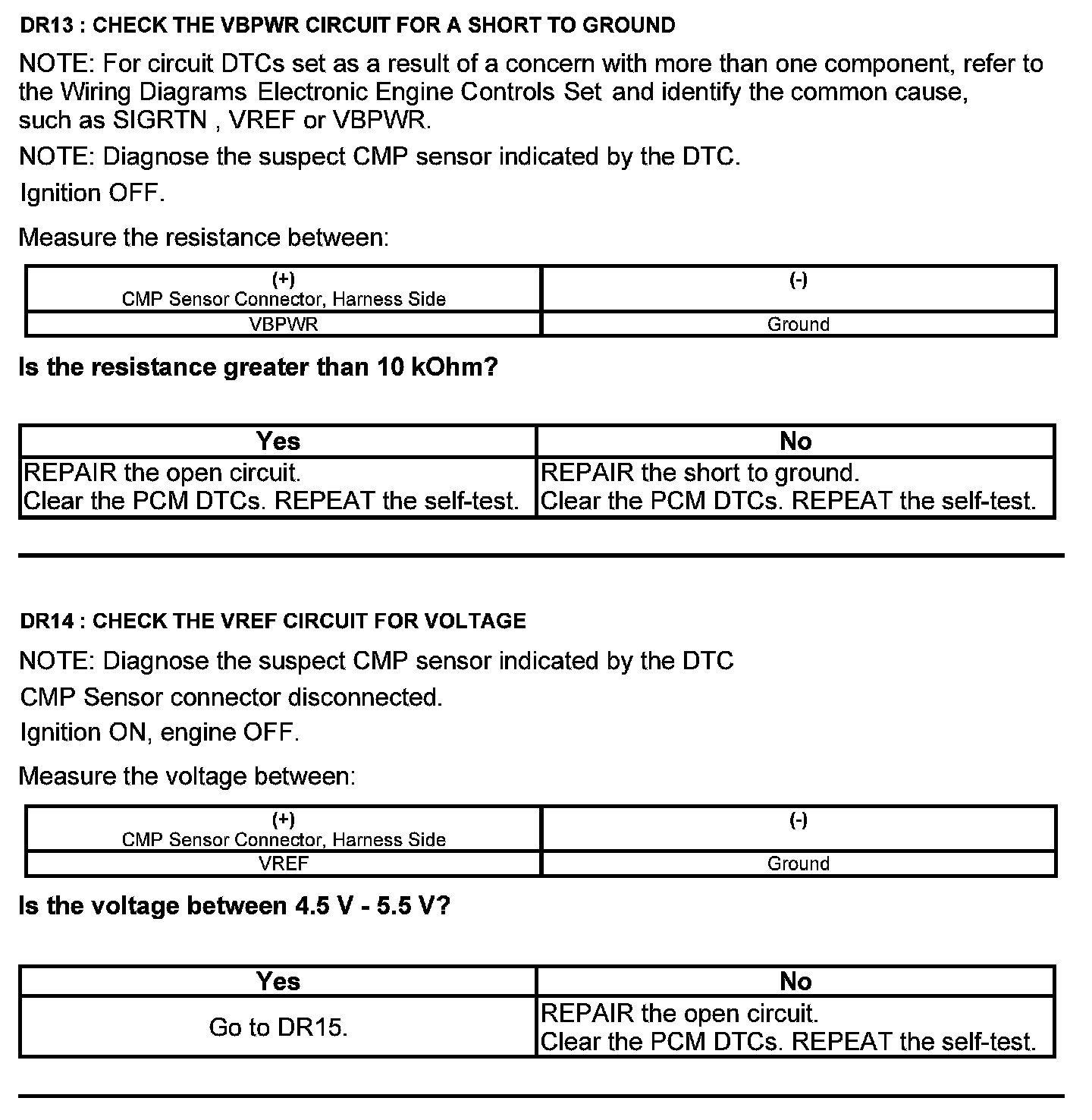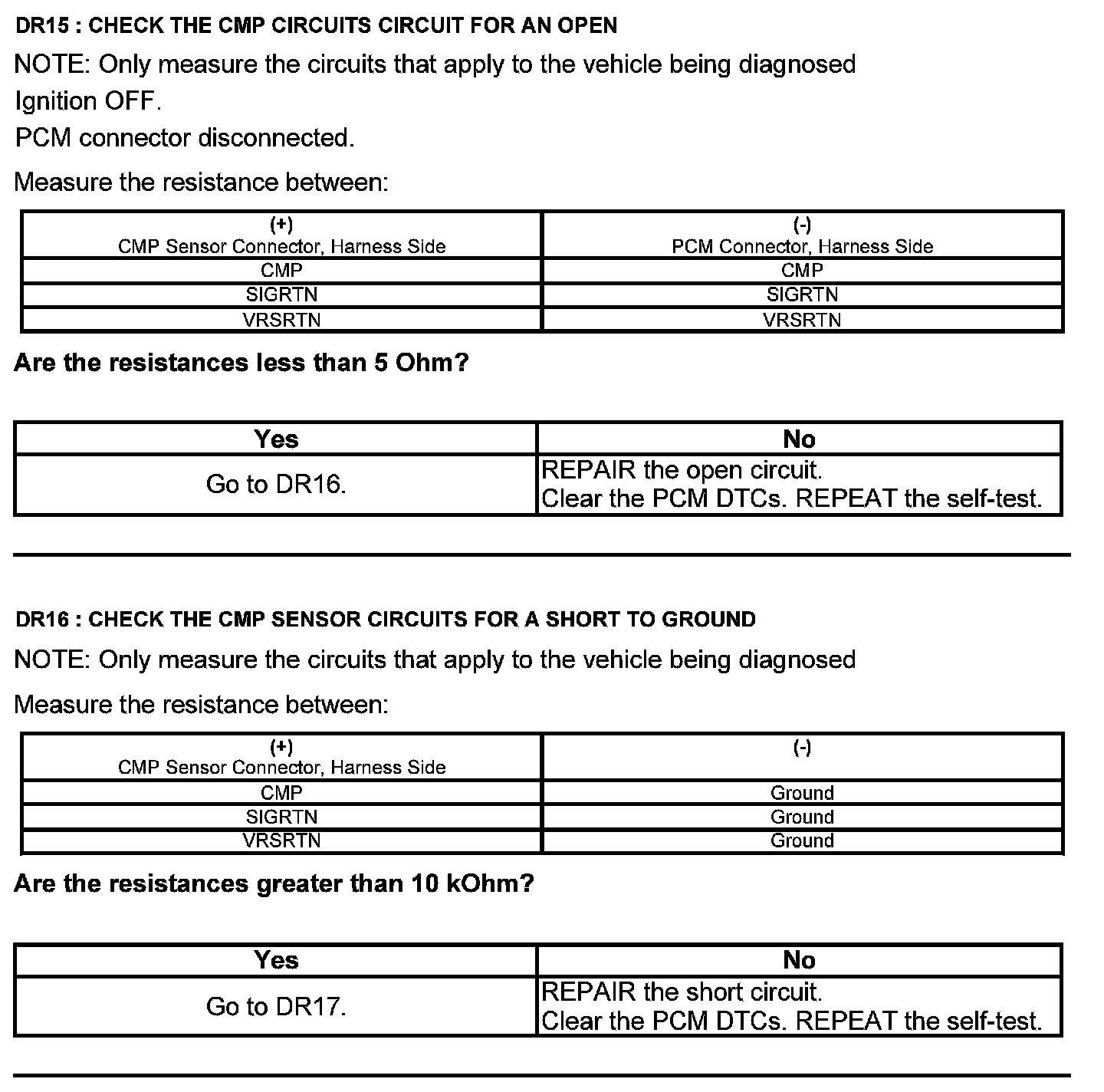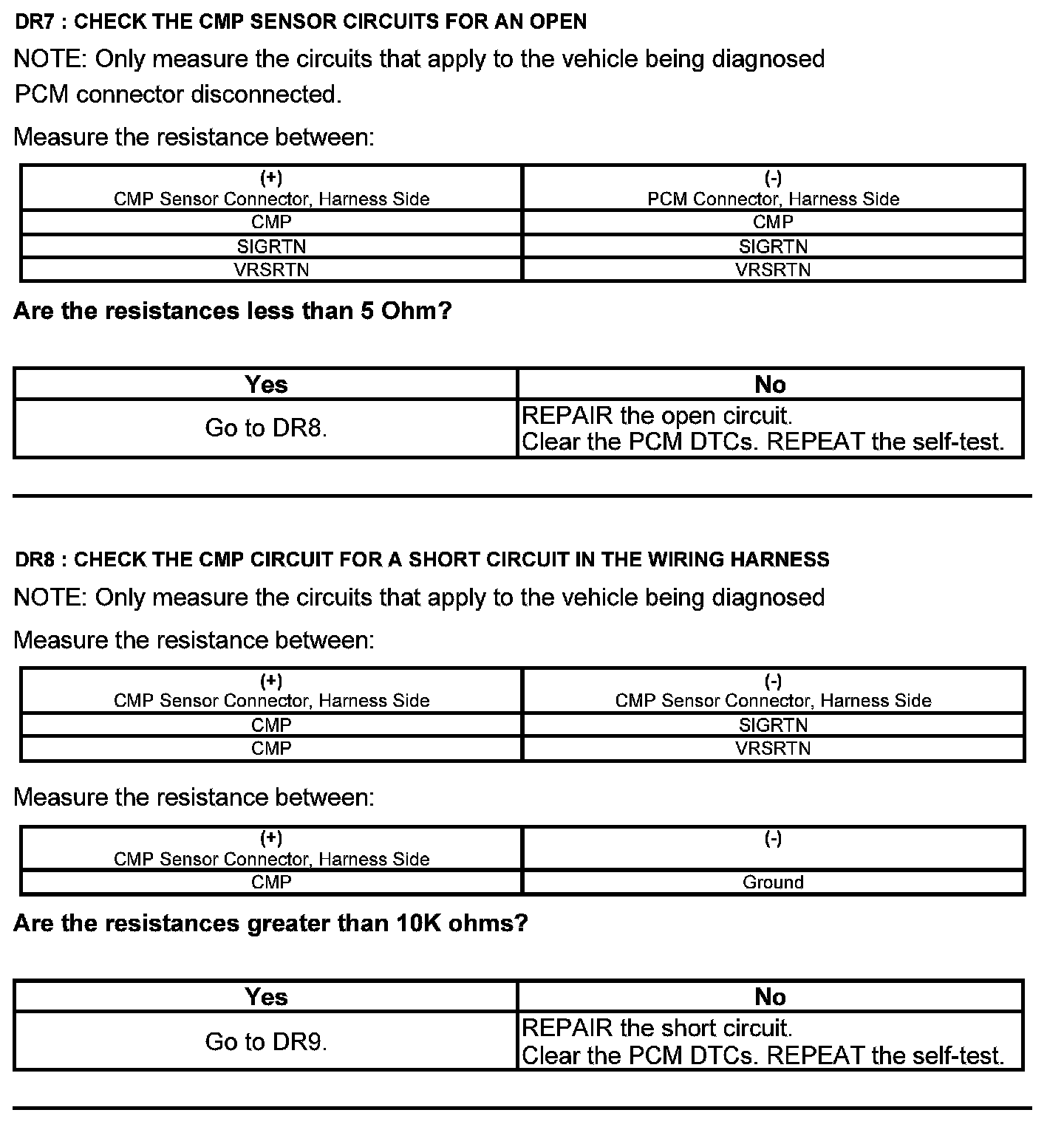 Test DR: Camshaft Position (CMP) Sensor