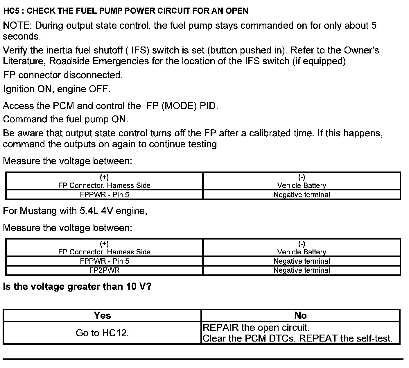 Test HC: Fuel Delivery System