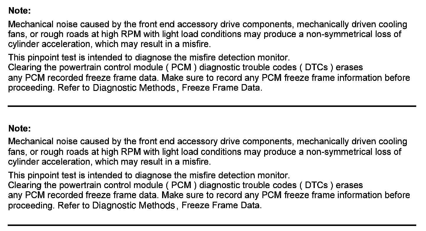 Home >> Ford >> 2012 >> F 150 4WD V8-5.0L >> Repair and Diagnosis >> Powertrain Management >> Computers and Control Systems >> Testing and Inspection >> Pinpoint Tests >> Test HD: Misfire Detection Monitor