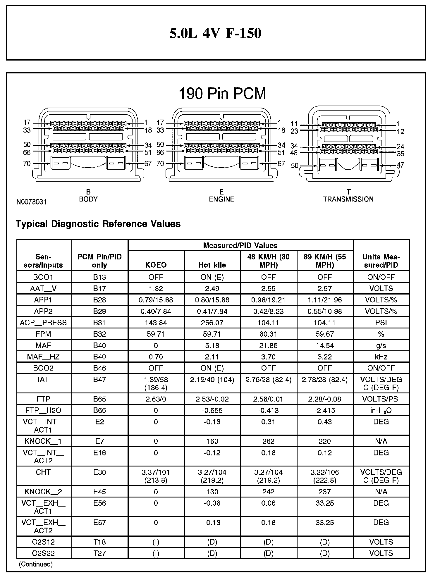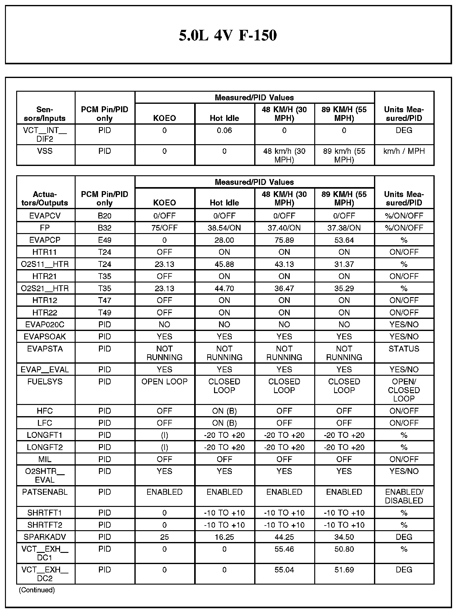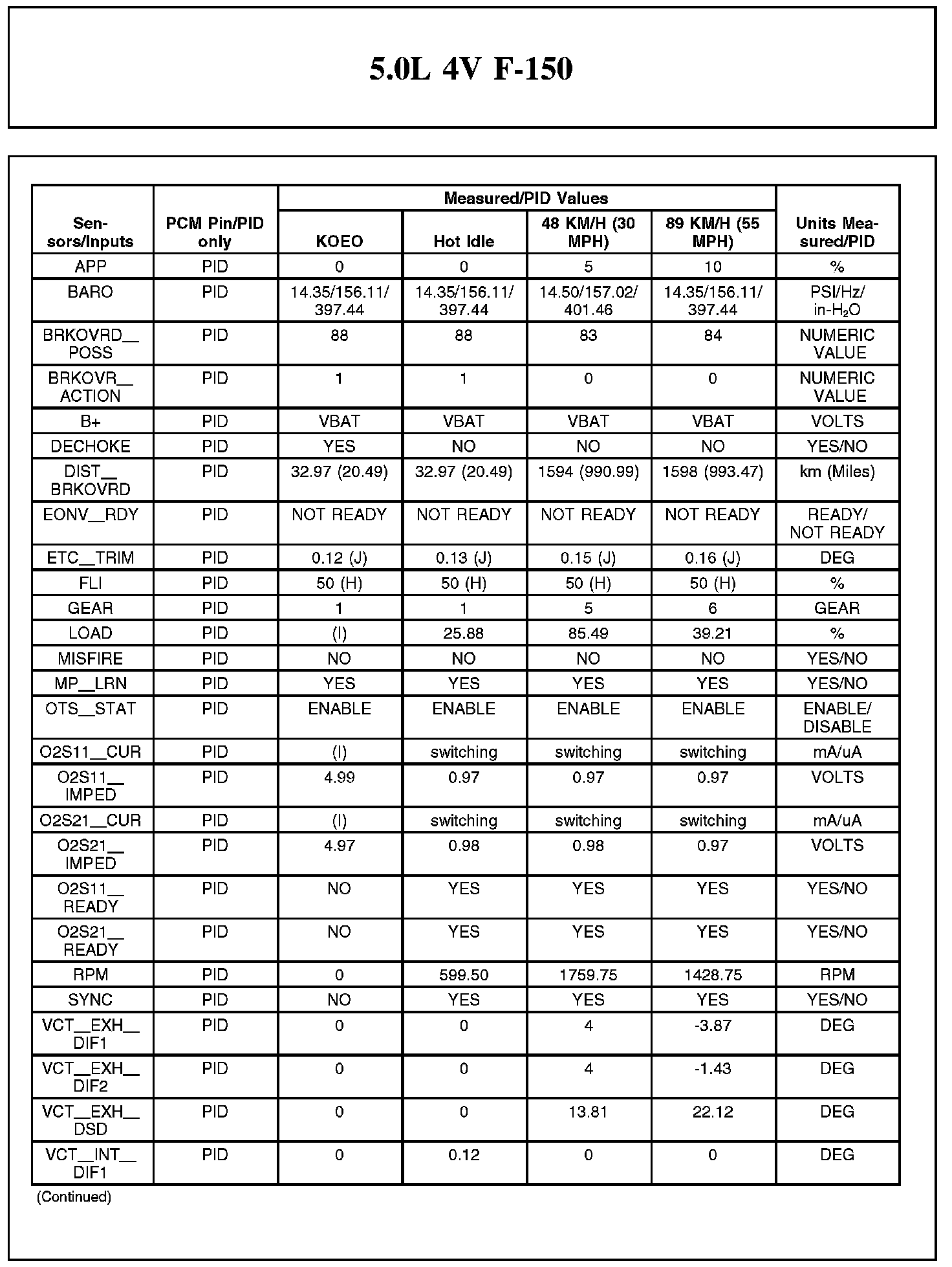 Home >> Ford >> 2012 >> F 150 4WD V8-5.0L >> Repair and Diagnosis >> Powertrain Management >> Computers and Control Systems >> Testing and Inspection >> Scan Tool Testing and Procedures >> Typical Diagnostic Reference Values