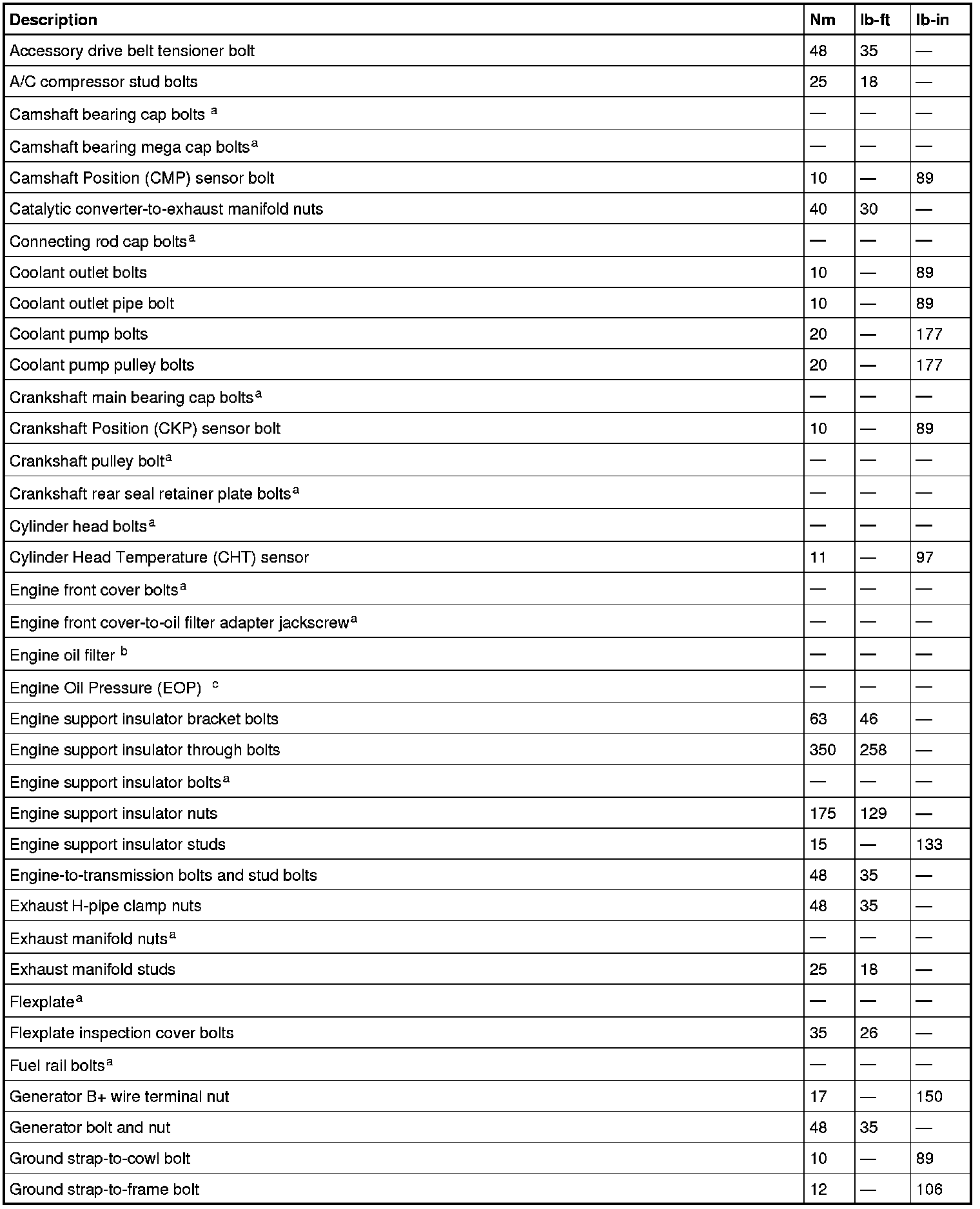 Torque Specifications