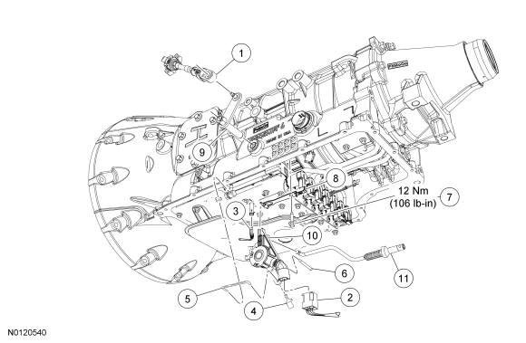 1. Install the park pawl actuator rod in the TR (Transmission Range) sensor.