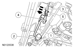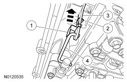 7. NOTICE: Do not bend the manual valve rod clip when installing the manual valve rod. If the manual valve rod clip is bent back to install the manual valve rod instead of sliding it off, the manual valve rod clip will become permanently distorted causing total loss of transmission control or transmission failure. If the manual valve rod clip is bent, install a new manual valve rod clip.