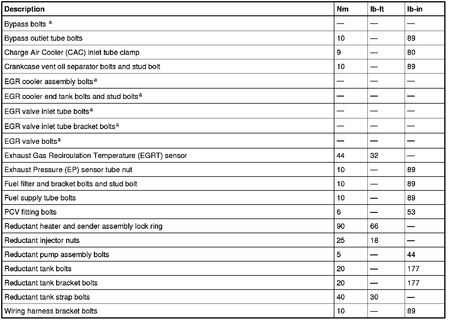 Torque Specifications