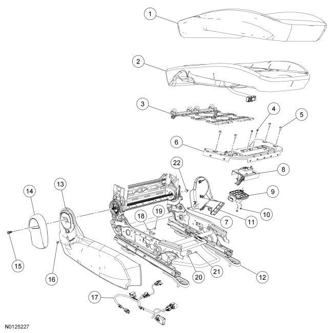 NOTE: Refer to Seat Cushion - Front Seat Cushion - Front for tightening sequence and torque specifications.