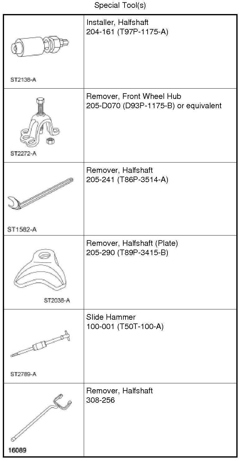3. Vehicles equipped with a manual transmission, use special tool 308-256 to detach the LH halfshaft.