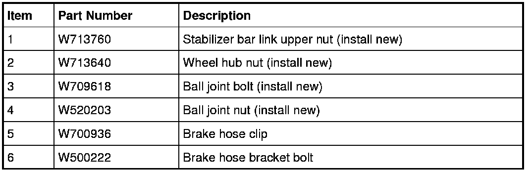 NOTICE: Suspension fasteners are critical parts because they affect performance of vital components and systems and their failure may result in major service expense. New parts must be installed with the same part numbers or equivalent part, if replacement is necessary. Do not use a replacement part of lesser quality or substitute design. Torque values must be used as specified during reassembly to make sure correct retention of these parts.