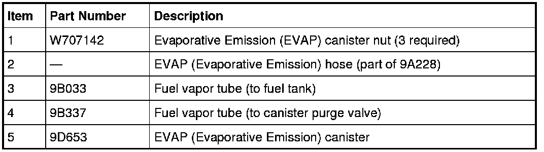 NOTE: After installing an Evaporative Emission (EVAP) canister or Evaporative Emission (EVAP) canister purge valve, carry out the Evaporative Emission System Leak Test. For additional information, refer to Evaporative Emission System Leak Test Testing and Inspection.
