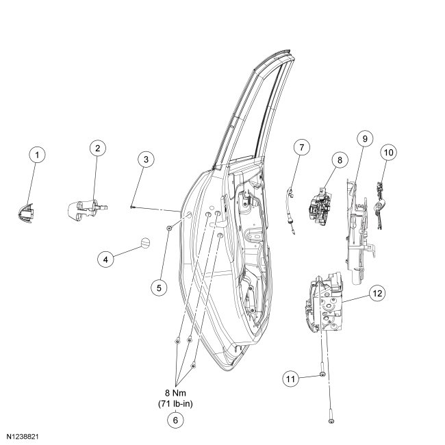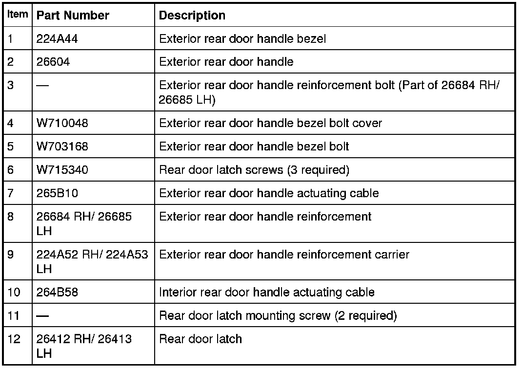 Rear Door Handles, Locks and Latches - Exploded View