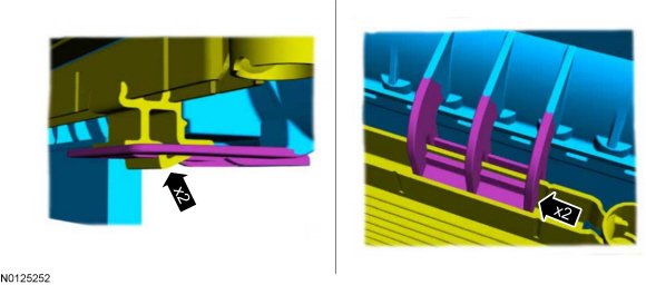 6. Release the LH and RH upper radiator bracket tabs and remove the LH and RH upper radiator insulators.