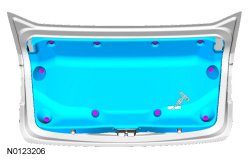 3. Remove the 10 pin-type retainers and the decklid trim panel.