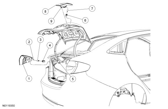 2. Disconnect and remove the rear outer lamp assembly.