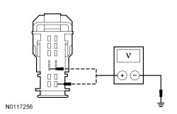 - Measure the voltage between the BCM (Body Control Module) C2280A-8, circuit SBB06 (BN/RD), harness side and ground; and between the BCM (Body Control Module) C2280A-14, circuit SBB24 (VT/RD), harness side and ground.