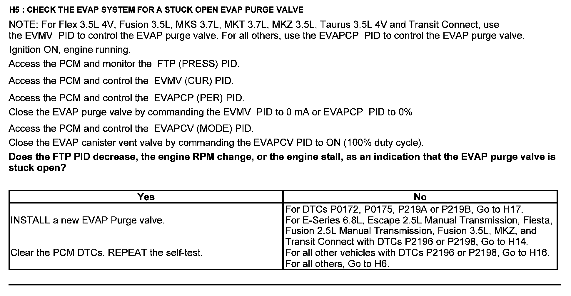 Home >> Ford >> 2012 >> Fiesta L4-1.6L >> Repair and Diagnosis >> Powertrain Management >> Computers and Control Systems >> Testing and Inspection >> Pinpoint Tests >> Test H: Fuel Control