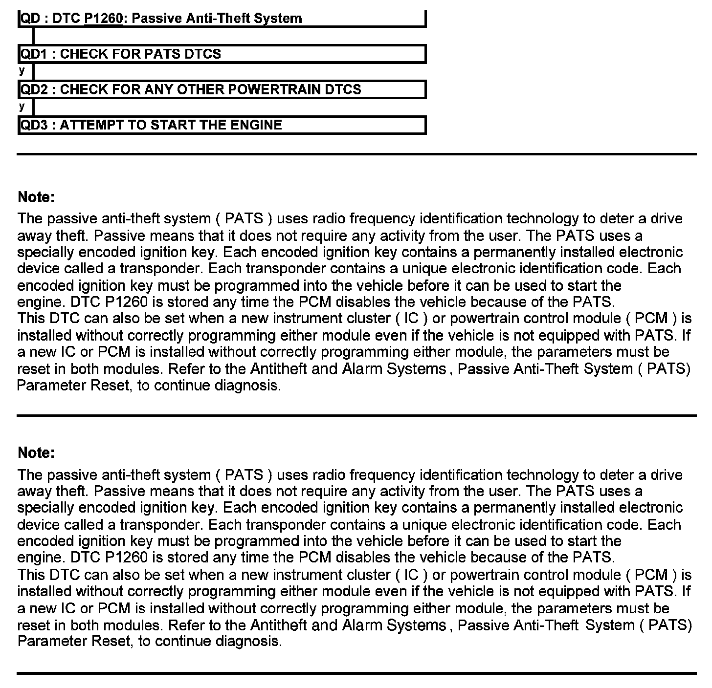 Test QD: DTC P1260: Passive Anti-Theft System