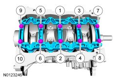 Tighten the 10 original main bearing beam bolts in the sequence shown in 2 stages.