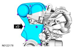 Install the upper timing belt cover and the 9 bolts.