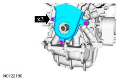 Install the lower timing belt cover and the 3 bolts.