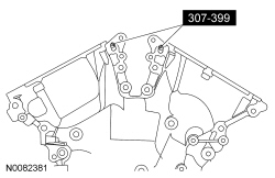 Apply a 3.0 mm (0.11 in) bead of Motorcraft(R) High Performance Engine RTV Silicone to the engine front cover sealing surfaces including the 3 engine mount bracket bosses.