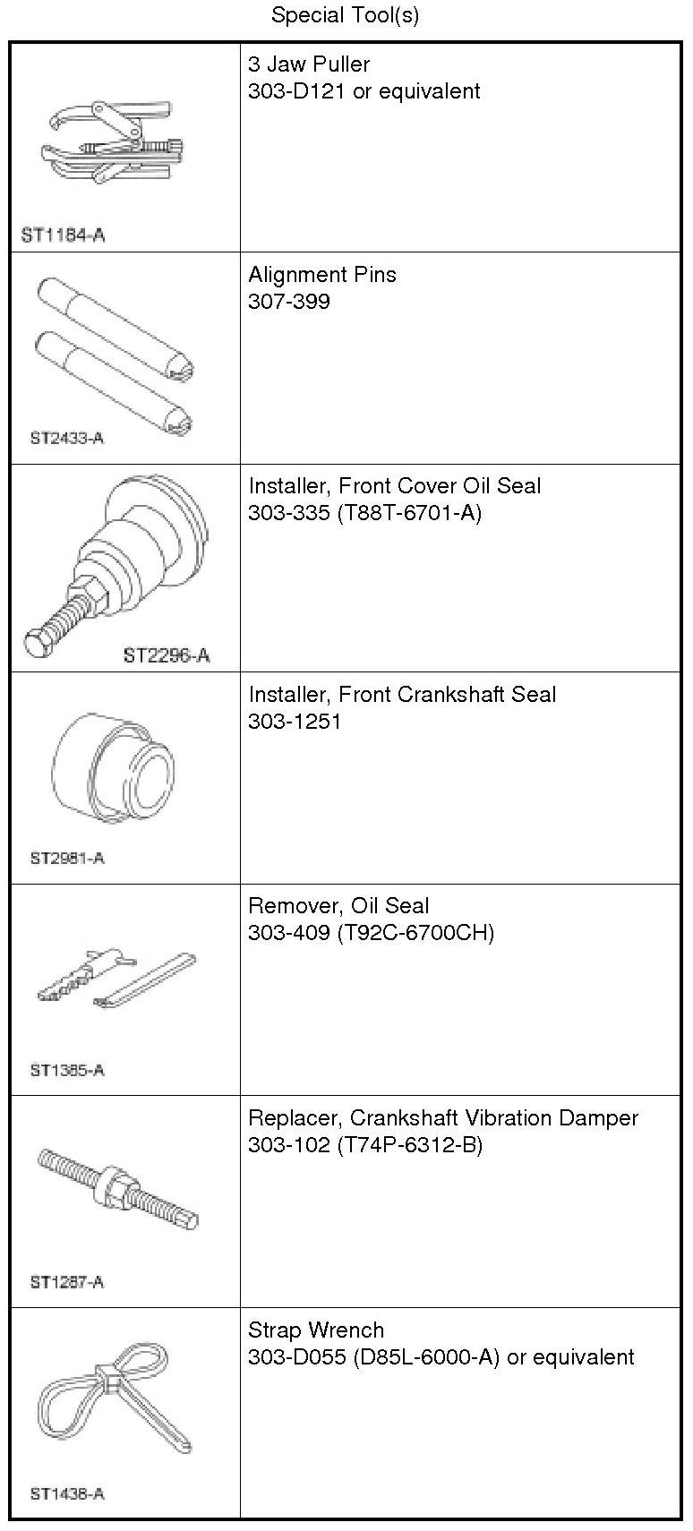 - Tighten the bolts one turn at a time in a crisscross pattern until the engine front cover-to-cylinder block seal is released.