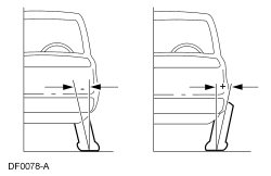 A backward tilt is positive (+) and a forward tilt is negative (-). Front caster adjustment is not a separate procedure on this vehicle. The vehicle will tend to drift/pull toward the side with the lowest caster.