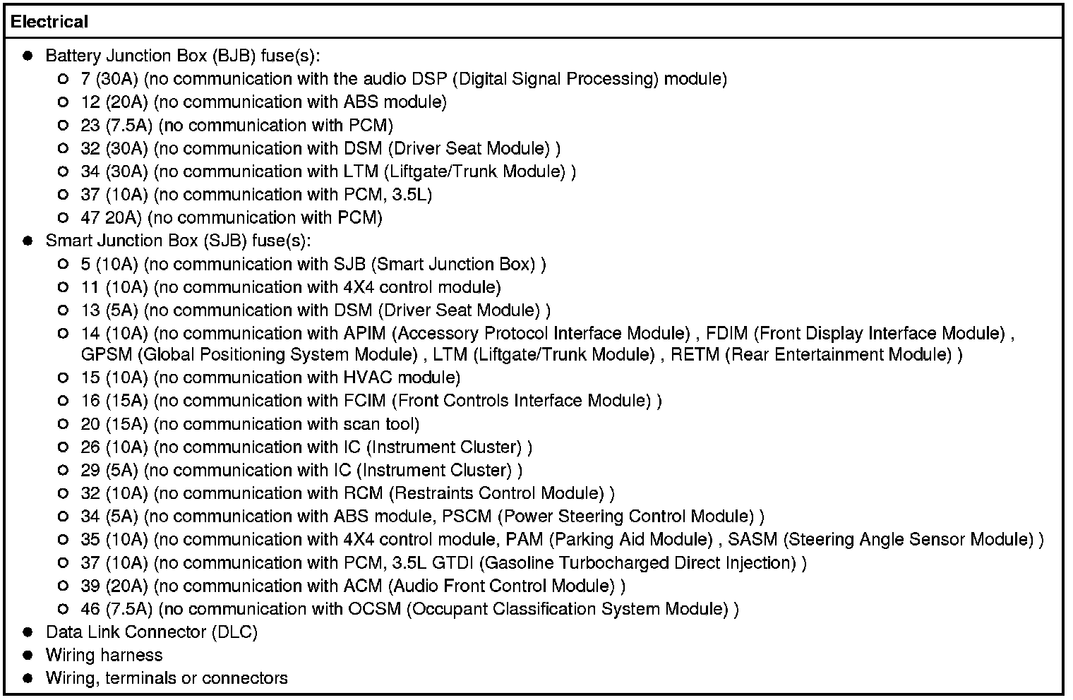 - If a module fails to communicate during the network test, GO to Symptom Chart. Symptom Related Diagnostic Procedures
