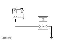 - Measure the resistance between the SASM (Steering Angle Sensor Module) C2412-4, circuit GD114 (BK/BU), harness side and ground.