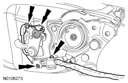 1. Separate the side air bag module electrical connector and wire harness retainers.