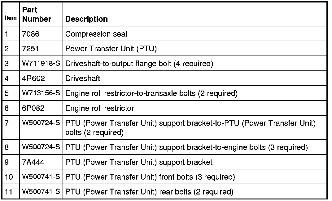 1. NOTE: A new compression seal must be installed whenever the Power Transfer Unit (PTU) is removed from the vehicle.