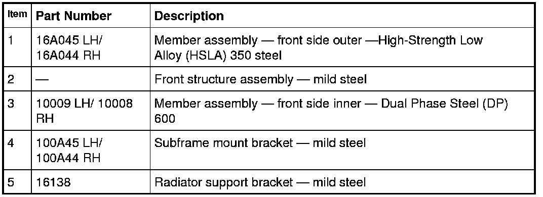 WARNING: Collision damage repair must conform to the instructions contained in this diagnostic/repair information. Replacement components must be new, genuine Ford Motor Company parts. Recycled, salvaged, aftermarket or reconditioned parts (including body parts, wheels or safety restraint components) are not authorized by Ford.