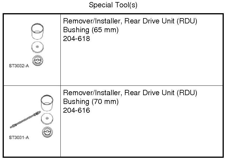 Install the RDU (Rear Drive Unit) bushing into the Rear Drive Unit (RDU) Bushing (70 mm) Remover/Installer 204-616/2.