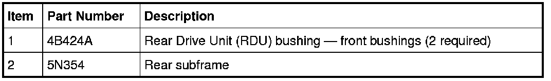 NOTE: There are 2 RDU (Rear Drive Unit) front bushings in the subframe. This procedure shows how to install one bushing. The procedure for the remaining RDU (Rear Drive Unit) bushing is identical.