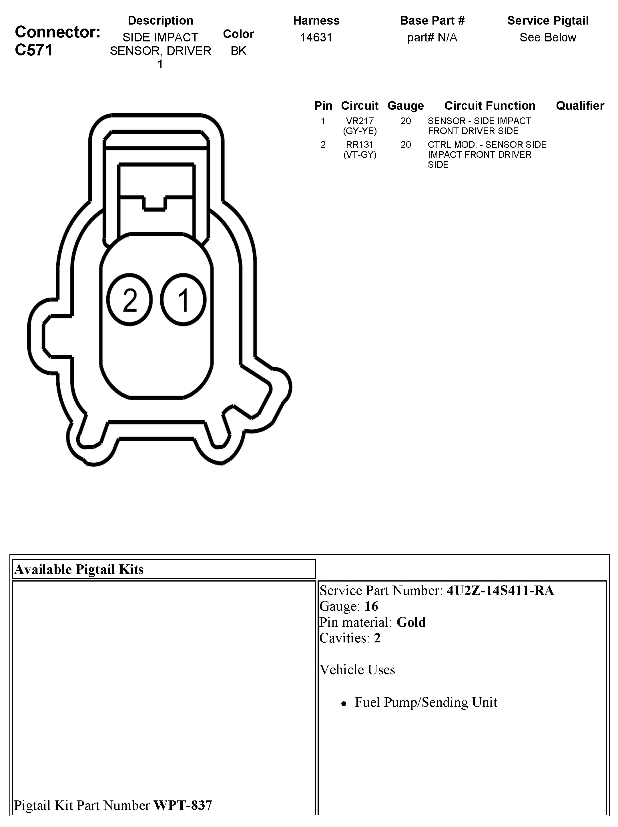 C571 Side Impact Sensor, Driver 1