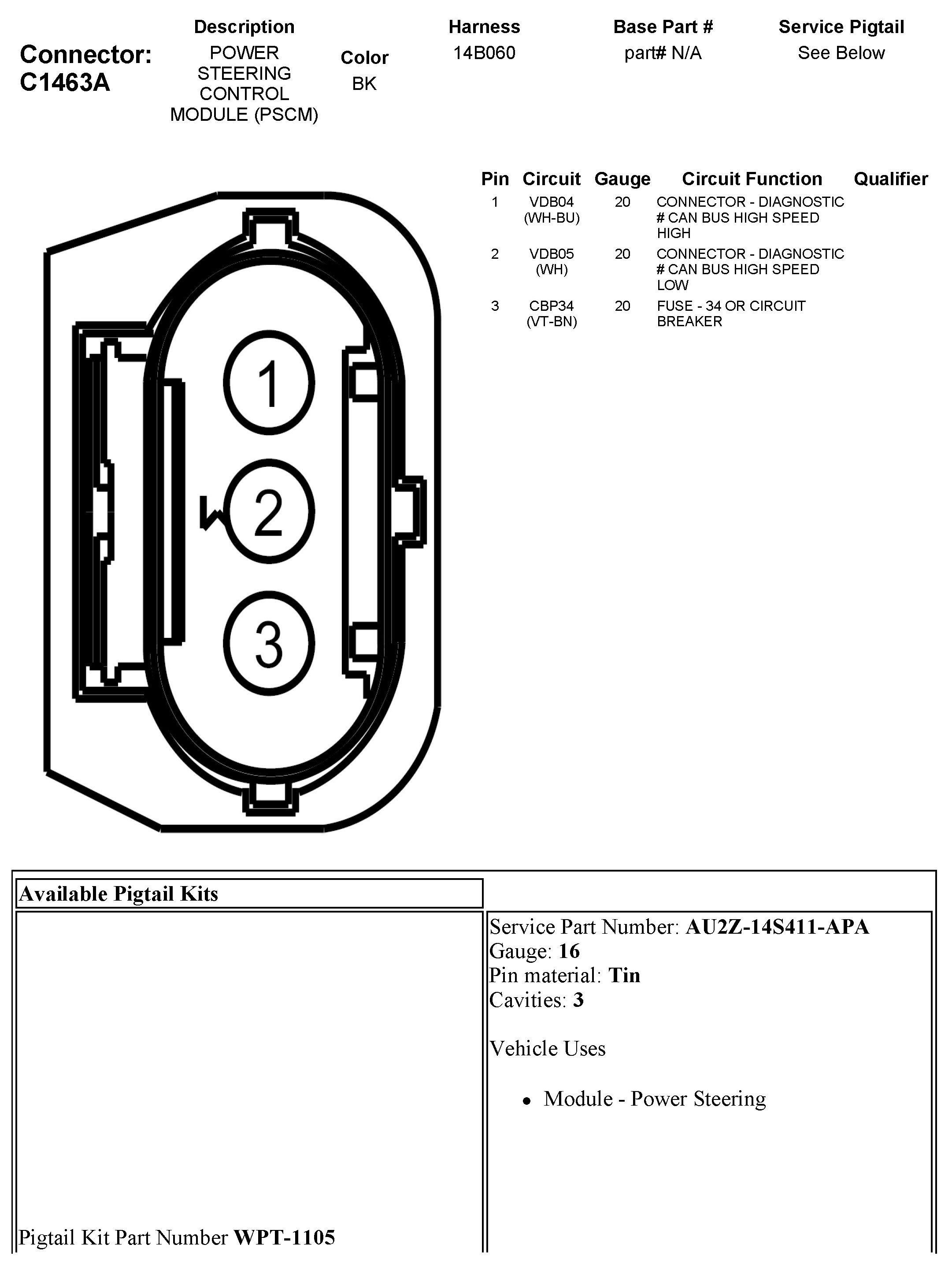 C1463A Power Steering Control Module (PSCM)