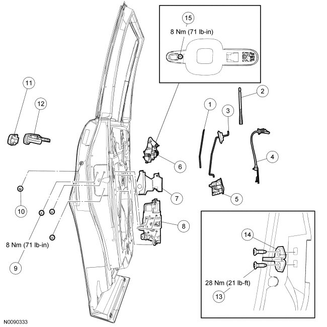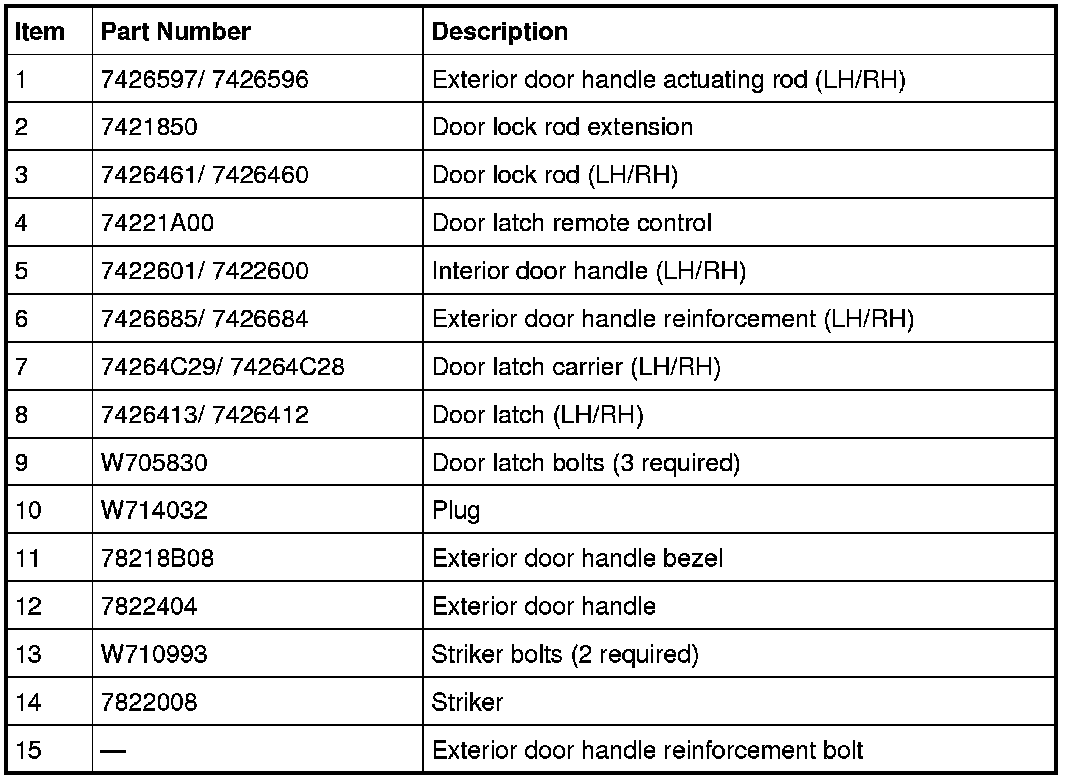 Rear Door Handles, Locks and Latches - Exploded View