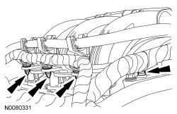 144. Attach all of the wiring harness retainers to the RH valve cover and stud bolts.