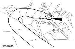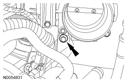 151. Install the fuel tube bracket bolt to the upper intake manifold and install the wiring harness pin-type retainer.