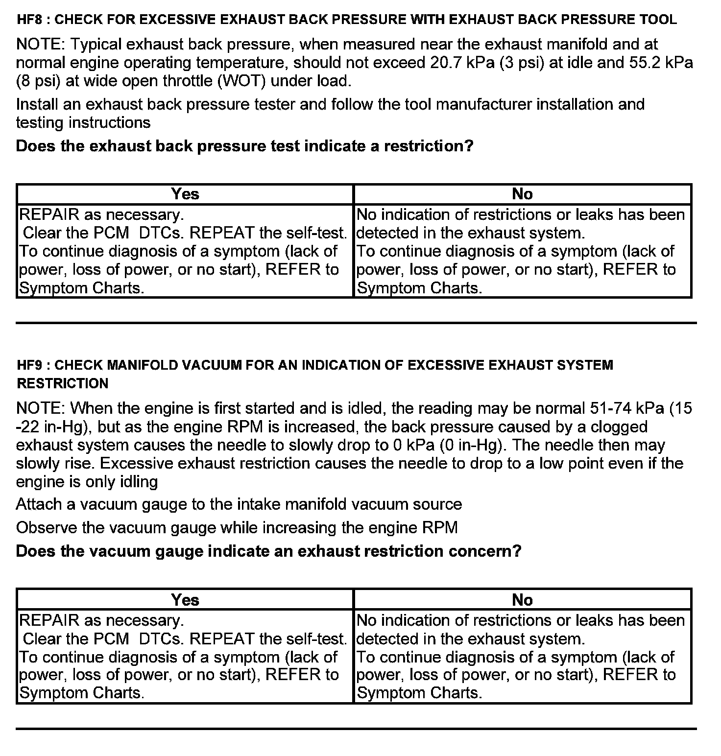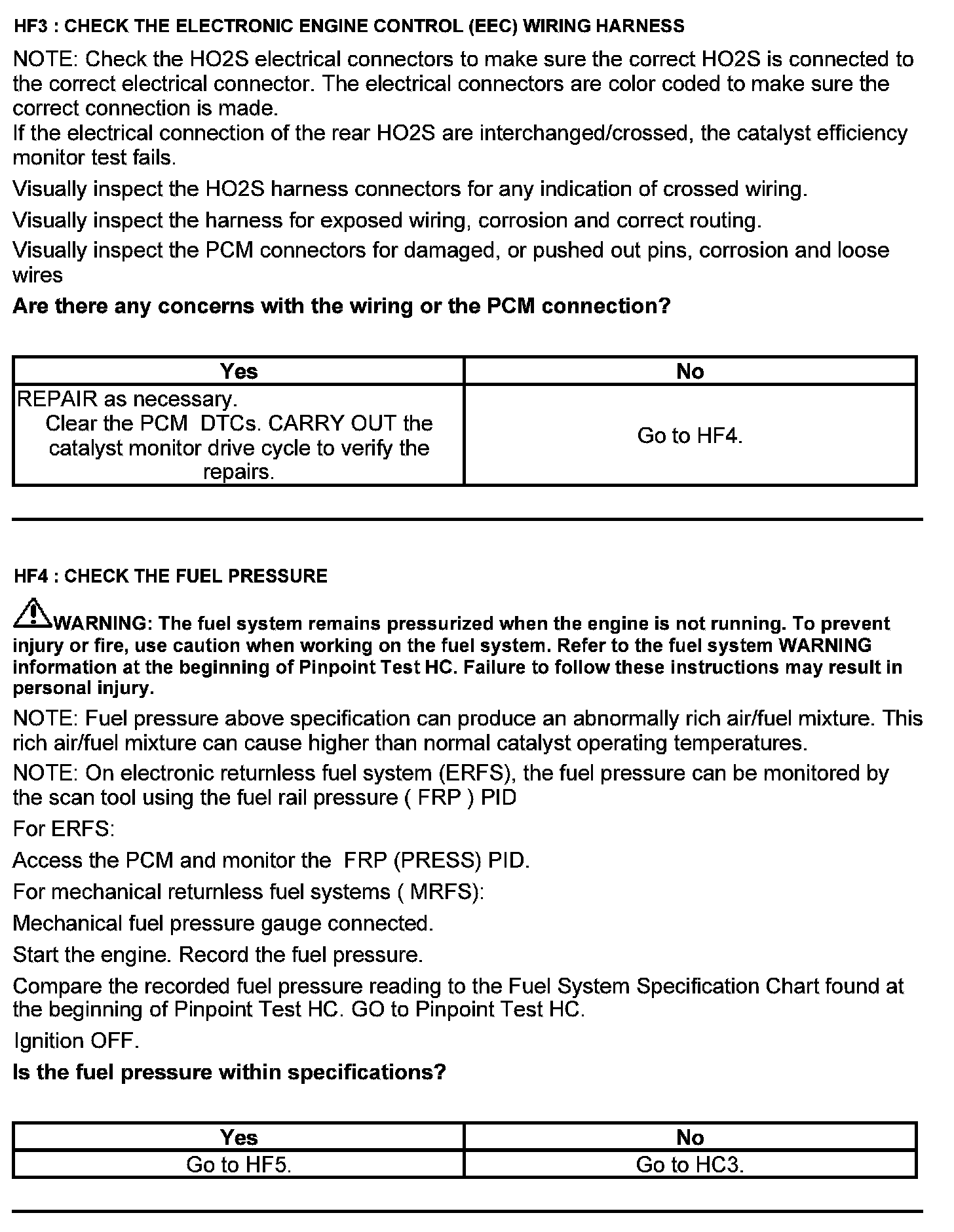 Test HF: Catalyst Efficiency Monitor and Exhaust Systems