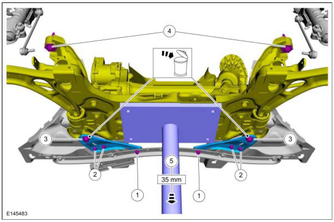 4. NOTE: While tightening the subframe bolts, make sure the front subframe does not move.